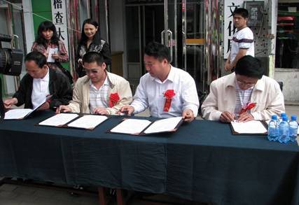 肇东市文化局柏局长、肇东市图书馆陈馆长签订黑龙江省图书馆流动分馆协议书
