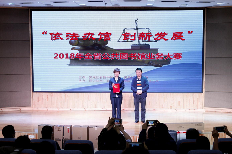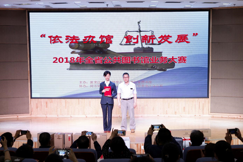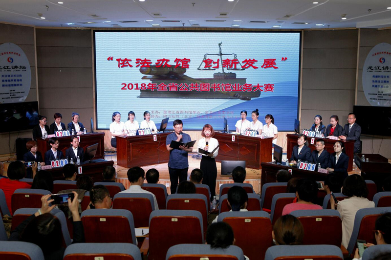 2018年5月15日,由黑龙江省图书馆学会、黑龙江省图书馆主办,同方知网(北京)技术有限公司黑龙江分公司协办的“2018年全省公共图书馆‘依法办馆 创新发展’业务大赛”在省图书馆报告厅隆重举行。哈尔滨地区、大庆地区、牡丹江地区、齐齐哈尔地区、伊春地区、绥化地区,共6个代表队参加了本次大赛,哈尔滨市区内的各级图书馆 100余名馆员观摩,大赛对全省各级各类图书馆同步直播。