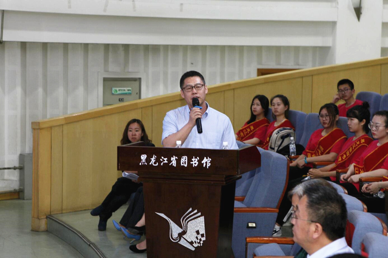 黑龙江省图书馆学会理事长,省图书馆馆长高文华代表主办方致辞,他在致辞中表示,《公共图书馆法》自2018年1月1日起施行,这是党的十九大之后全国人大常委会通过的第一部文化立法,也是继《公共文化服务保障法》之后的又一部重要的公共文化大法,对于进一步健全我国文化法律制度、促进公共图书馆事业发展、保障人民群众基本文化权益具有里程碑式的意义。年初,为了贯彻落实《中国图书馆学会关于举办“依法办馆 创新发展——新时代公共图书馆建设与服务”主题活动的通知》(中图学字[2018]1号)文件精神,省图书馆学会组织全省公共图书馆积极参与了知识学习竞赛,共67家单位的640位馆员参加了初赛,在全国31个参赛省级行政区域中名列第二,并有64人进入复赛。哈尔滨市图书馆、大庆市图书馆的参赛人数位列第五与第七位。