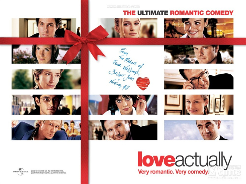 片中存在许多爱的错失、背叛、无奈、遗憾,爱情之后真实琐碎的生活,一天天没有波澜的重复,却是爱最真实的所在。电影的主题曲最直接地诠释了一种圣诞情结,流行老歌手比尔?奈伊将“WetWetWet”的冠军曲《Love Is All Around》无厘头地改唱成圣诞歌曲《Christmas Is All Around》,成为影片的点睛之作。片中的浪漫让人随时随地都受欢迎。对于爱情和圣诞节,片中的英国人显得更实际一些,伦敦都会里男女老幼的爱情与人生在圣诞节的前夕不断交错、撞击,有人感受到罗曼蒂克的气氛,也有人在为爱抓狂。