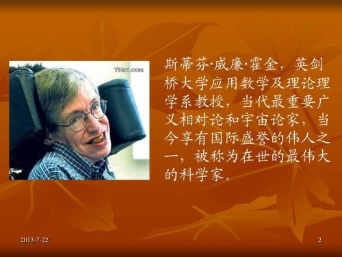 霍金最具代表性的科普著作是《时间简史》,作为讲座的知识性铺陈,我们也将做生动介绍。