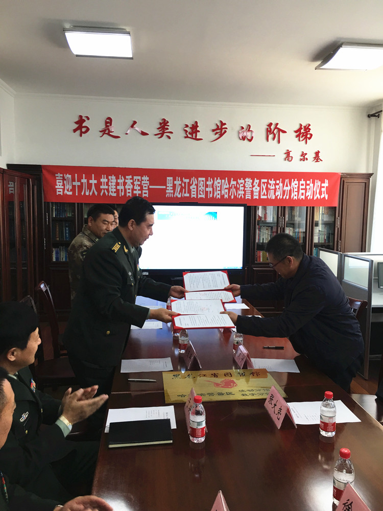 喜迎十九大,共建书香军营——黑龙江省图书馆哈尔滨市警备区流动分馆启动仪式