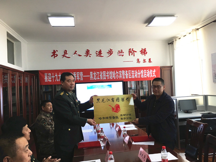 为迎接党的十九大胜利召开,加强对军队文化工作的支持,进一步发挥公共图书馆的知识传播职能,提高我省部队官兵的文化科学综合素质,10月17日下午,黑龙江省图书馆援建哈尔滨警备区流动分馆、数字分馆正式投入使用。