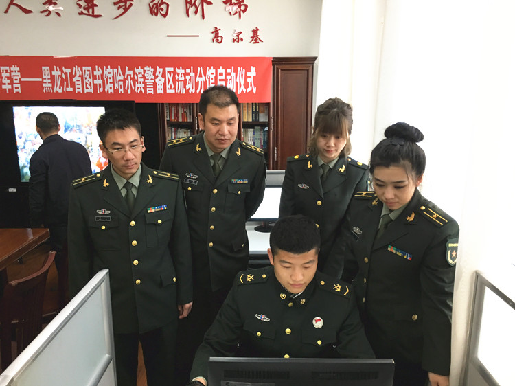 黑龙江省图书馆哈尔滨警备区流动分馆、数字分馆的建立,不仅拓宽了官兵的知识视野,更丰富了官兵的业余文化生活,是军民共建的又一硕果。流动分馆、数字分馆成立之后,省图书馆不断增加图书和数字资源的投放量,定期更换馆藏图书,资源共享。同时,根据官兵的需求,开展讲座、展览、演讲等内容丰富、形式多样的活动,支援军队文化建设,增进军民友谊,将文化拥军工作不断向纵深推进。