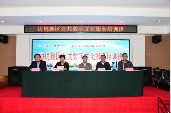 为进一步推动边疆万里数字文化长廊建设,促进公共数字文化更好地服务边境地区广大群众,2017年9月5日,由文化部全国公共文化发展中心主办,由黑龙江省文化厅、文化共享工程黑龙江省分中心承办的边境地区公共数字文化服务培训班在黑龙江省黑河市顺利举行。文化部全国公共文化发展中心副主任罗云川、黑龙江省文化厅副厅长韩慧峰、黑河市人民政府副市长陈晓杰出席了开班仪式,仪式由黑龙江省级分中心主任高文华主持。