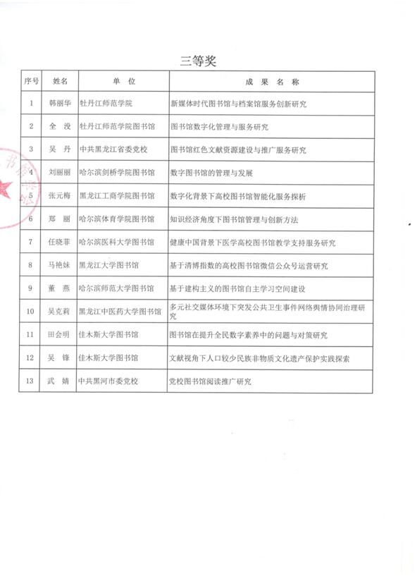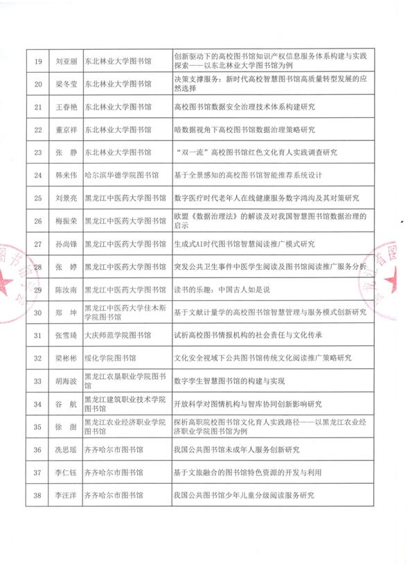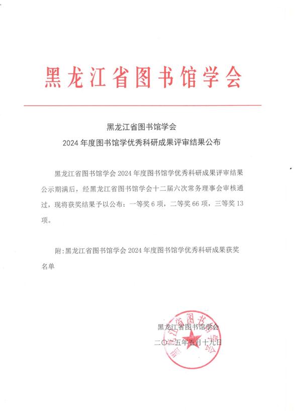 黑龙江省图书馆学会 2024年度图书馆学优秀科研成果评审结果公布