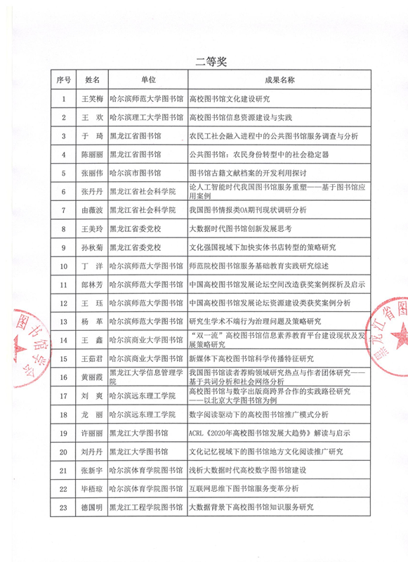 黑龙江省图书馆学会2021年度图书馆学优秀科研成果评审结果公布