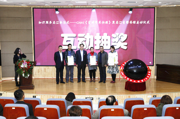 2016年11月1日,由黑龙江省图书馆学会与中国知网黑龙江知识服务中心举办的“知识服务龙江新范式——CNKI《全球学术快报》黑龙江省图书馆启动仪式”在黑龙江省图书馆举行。来自政府相关部门、教育、医疗、科研院所、企业及各个图书馆系统等不同行业代表近300人参加会议。首先,由黑龙江省图书馆学会秘书长闻德锋,黑龙江省高校图工委秘书长、东北农业大学图书馆馆长刘世英分别致辞,他们充分肯定了清华同方集团,尤其是中国知网黑龙江分公司在学术研究、文献提供、知识组织等方面做出的卓越贡献,并衷心预祝CNKI借助《全球学术快报》发布的平台,在龙江大地上生根开花,越办越好。之后,CNKI黑龙江分公司总经理赵景海讲话,他简要回顾了CNKI的发展历程及黑龙江分公司工作开展情况。然后,黑龙江分公司副经理卞妍详细介绍了《全球学术快报》研发动因,基本内容,使用方式;产品经理张瑜进行了《全球学术快报》产品展示;市场经理费婷介绍了《全球学术快报》有奖体验活动参与方式;并在会议现场对与会者填写的《问卷调查》进行抽奖。最后,由闻德锋秘书长、刘世英馆长和赵景海总经理共同按动水晶球,《全球学术快报》在黑龙江的启动仪式隆重启幕。