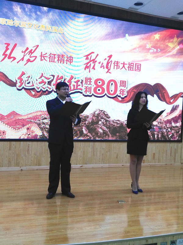 为纪念长征胜利80周年,学习、传承伟大的长征精神,激发人民为中华民族伟大复兴而努力奋斗的斗志,由哈尔滨市委宣传部、哈尔滨广播电视台、黑龙江省图书馆主办,哈尔滨市朗诵协会、黑龙江省图书馆朗诵沙龙协办的“弘扬长征精神 歌颂伟大祖国——纪念长征胜利80周年文艺演出”于2016年10月23日9:00在黑龙江省图书馆报告厅举行。