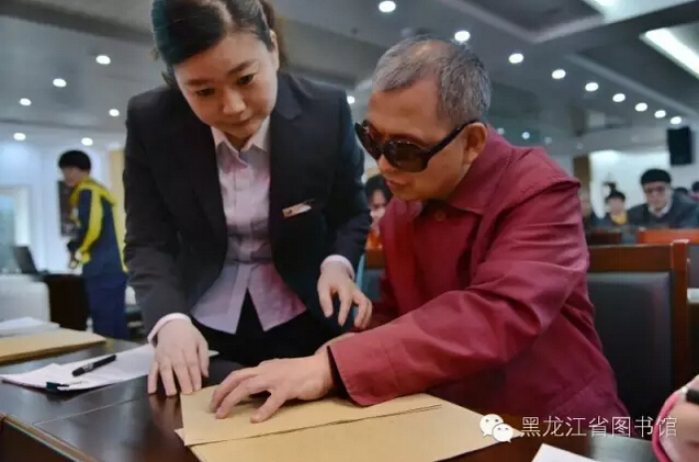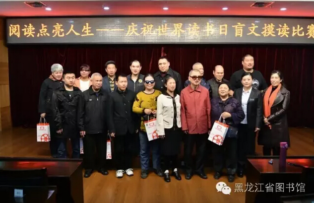 4月22日,为迎接世界读书日,让盲人朋友感受到读书的乐趣,激发读书的热情,黑龙江省图书馆与黑龙江省新闻出版广电局、哈尔滨市残疾人联合会盲人协会共同组织了“阅读点亮人生”盲文摸读比赛,比赛由哈尔滨市所属各区盲人协会推荐的15位选手参赛,现场100多位盲人观众为选手加油、助威,经过2个小时的比赛,最终由专家根据参赛选手在规定时间内摸读盲文的字数、朗读是否顺畅、是否有错别字、感情是否充沛、精神面貌等内容评选出一等奖1名、二等奖2名、三等奖3名。黑龙江省新闻出版广电局为现场的盲人观众提供了纪念品,鼓励他们多读书,提高盲文读写技能,走出家门融入社会。