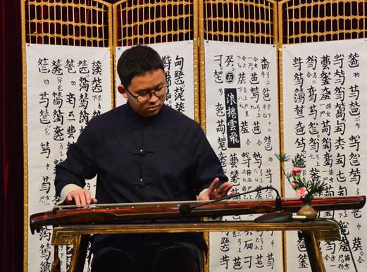 除古琴演奏外,现场还演绎了古琴与茶道,古琴与花道,古琴与书法相结合的艺术形式,通过多种艺术表演形式,展示古琴文化,传达今人对传统的认同与敬重。精彩的表演赢得现场阵阵掌声。