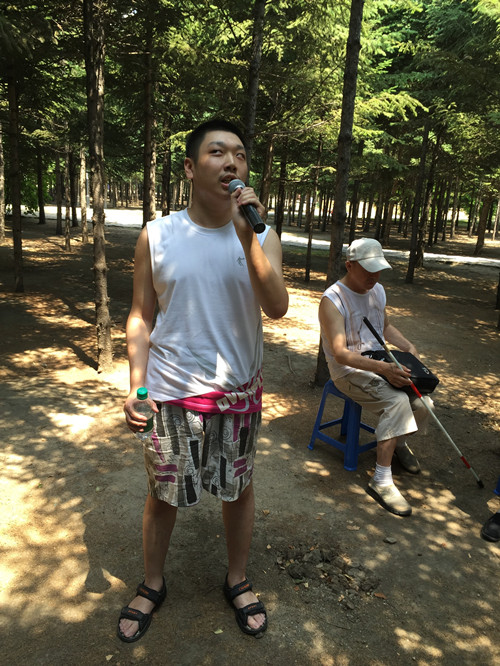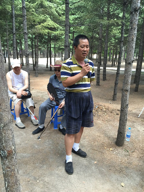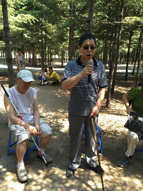 2015710日,黑龙江省图书馆无障碍服务部组织盲人电脑培训班的学员们走进大自然,在绿树、青草地、微风的怀抱里聆听书香。