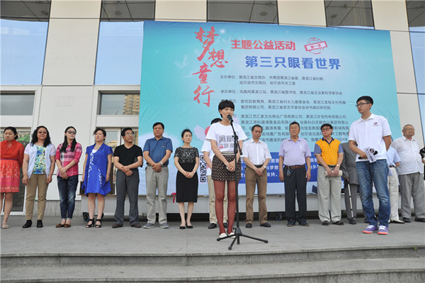 梦想照耀斑斓色彩,爱心助力童心期待。由黑龙江省文明办牵头,共青团黑龙江省委、黑龙江省妇联、哈尔滨市文明办、哈尔滨市关工委联合主办,凤凰网黑龙江站、黑龙江省图书馆、黑龙江省企业家科学家协会共同承办,香坊区教育局、黑龙江省妇女儿童基金会、黑龙江省老艺术家协会诗书画印研究院、龙视文化传媒集团支持协办的大型公益活动“梦想童行——第三只眼看世界”于