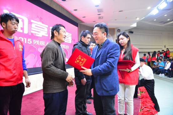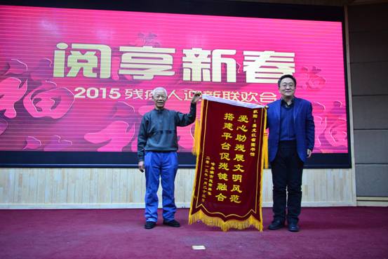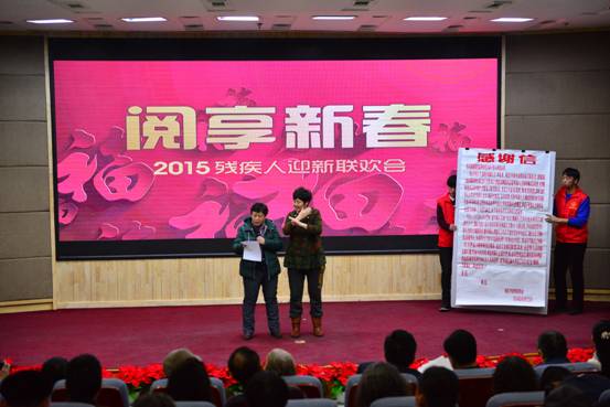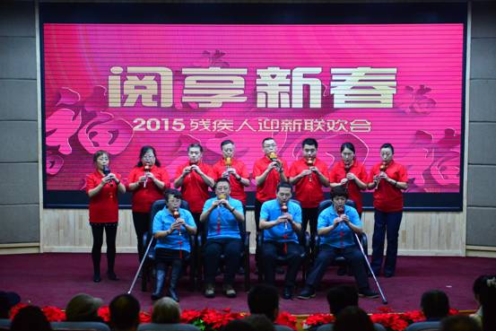 2015年1月23日上午9时,黑龙江省图书馆无障碍服务中心举办了“阅享新春”2015残疾人迎新联欢会。张大尧馆长为残疾读者致新年贺辞并为荣获2014年度盲人阅读优秀读者和优秀志愿者颁发了荣誉证书。经我馆培训的盲人、聋人、老年人电脑培训班学员、残疾人葫芦丝演奏培训班学员、残疾人俄语培训班学员们为感谢黑龙江省图书馆对残疾人的关爱和帮助赠送了锦旗。联欢会上,学员们用舞蹈、小品、魔术、葫芦丝演奏、诗歌朗诵及戏曲联唱等真挚深情的表演打动了300多名残疾观众,现场气氛祥和、温暖、感动!送福字和抽奖活动使气氛更加热烈,联欢会最后以聋哑人经典舞蹈《千手观音》圆满结束。