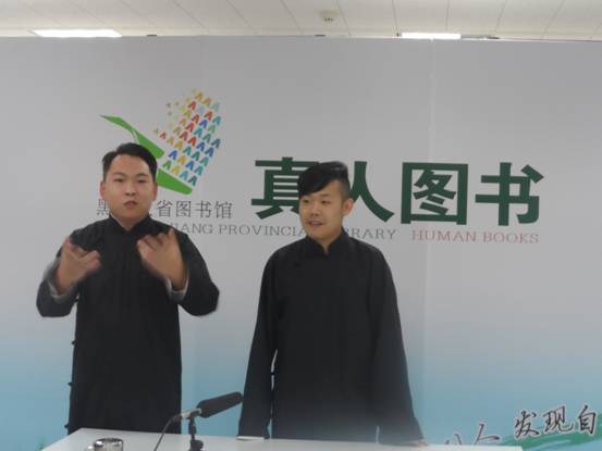 在活动结束之际,龙缘相声社两位年轻的演员现场表演了一段相声,引得现场的读者不由自主的发出阵阵掌声和笑声,使现场读者再次感受到相声的感染力与艺术魅力。