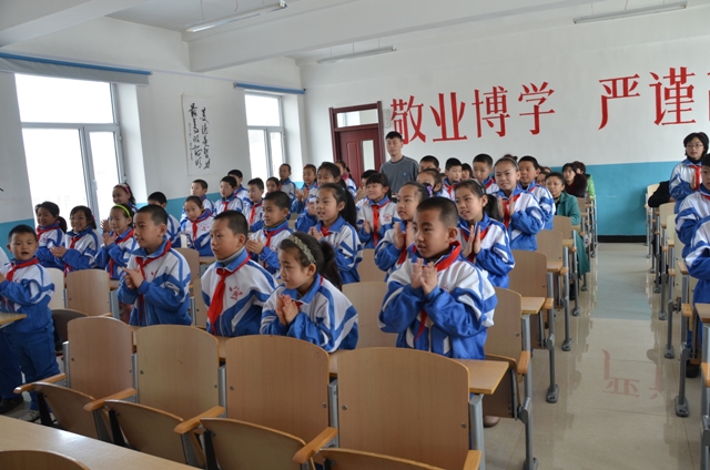 金山屯第二小学多功能教室受捐赠的现场