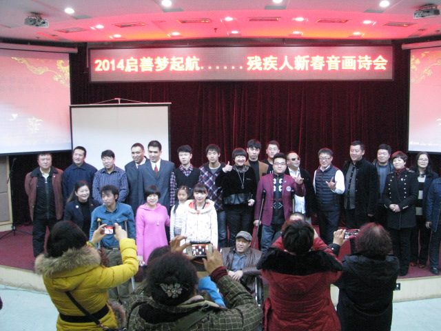 为进一步丰富活跃残疾人文化生活,展示残疾人文化成果,弘扬扶残助残社会主旋律,促进残健融合。2014年1月22日,黑龙江省图书馆、哈尔滨残疾人活动中心、南岗区文明办、道里区残疾人联合会共同举办了《中国梦·我的梦——“爱在当下梦圆未来”》残疾人新年音乐诗会。