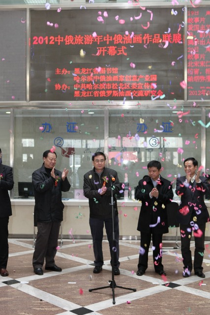 今天上午十时,由黑龙江省图书馆、哈尔滨中俄油画家创意产业园主办的“2012·中俄旅游年中俄油画作品联展”在黑龙江省图书馆举行了隆重的开幕仪式。