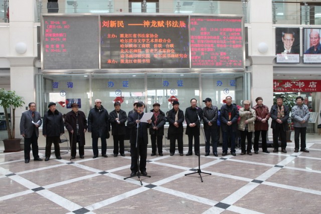 在龙腾盛世之春,由黑龙江省书法家协会,哈尔滨市文学艺术界联合会等部门主办,黑龙江省图书馆承办的“刘新民——神龙赋书法作品展”今天上午在黑龙江省图书馆举行了开幕式。