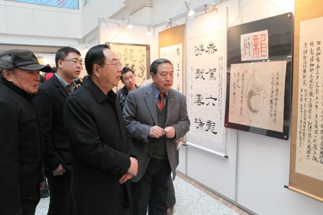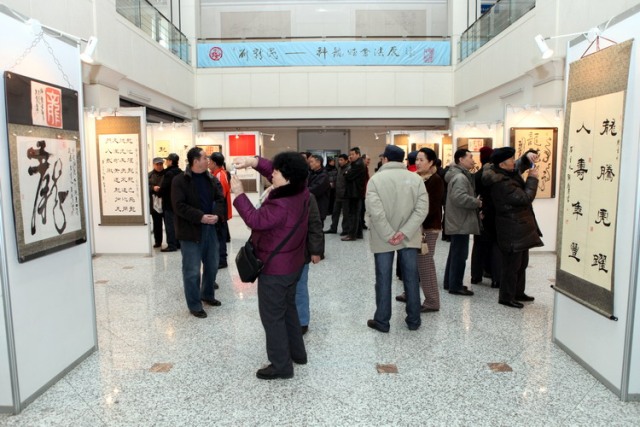 利化、杨力、姚伟生、谢英梅、齐燕滨、王铁强、李辽昌、王福林等省、市有关领导,书画界艺术家及150余位嘉宾参加了开幕式并参观了展览。我馆副馆长刘继维主持了开幕式。书法家刘新民即兴发表了感言。
