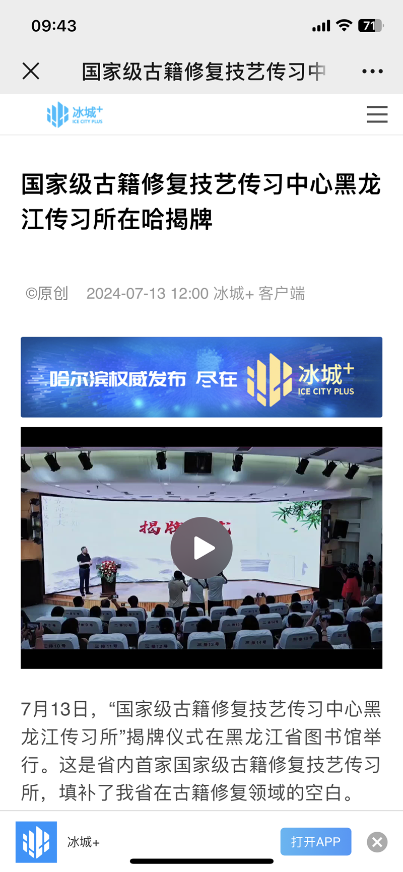 国家级古籍修复技艺传习中心黑龙江传习所在哈揭牌