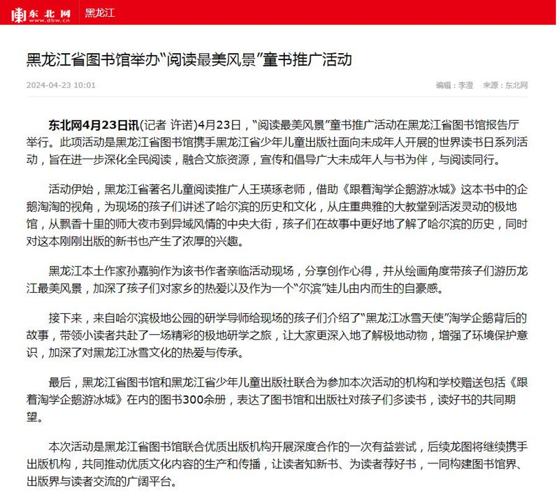 黑龙江省图书馆举办“阅读最美风景”童书推广活动