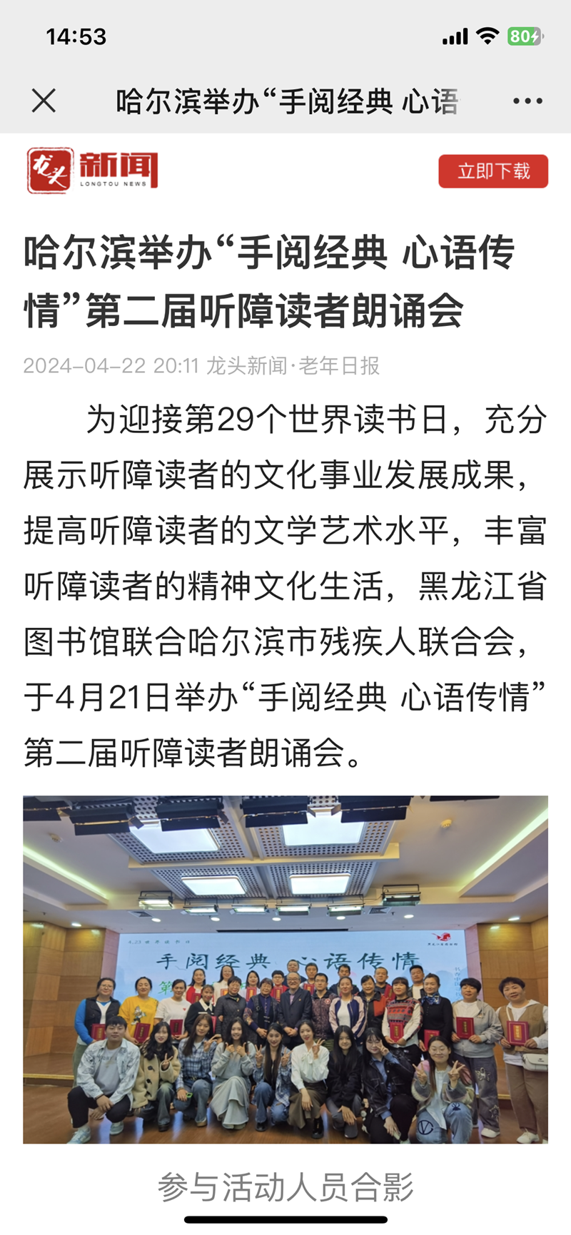 哈尔滨举办“手阅经典 心语传情”第二届听障读者朗诵会