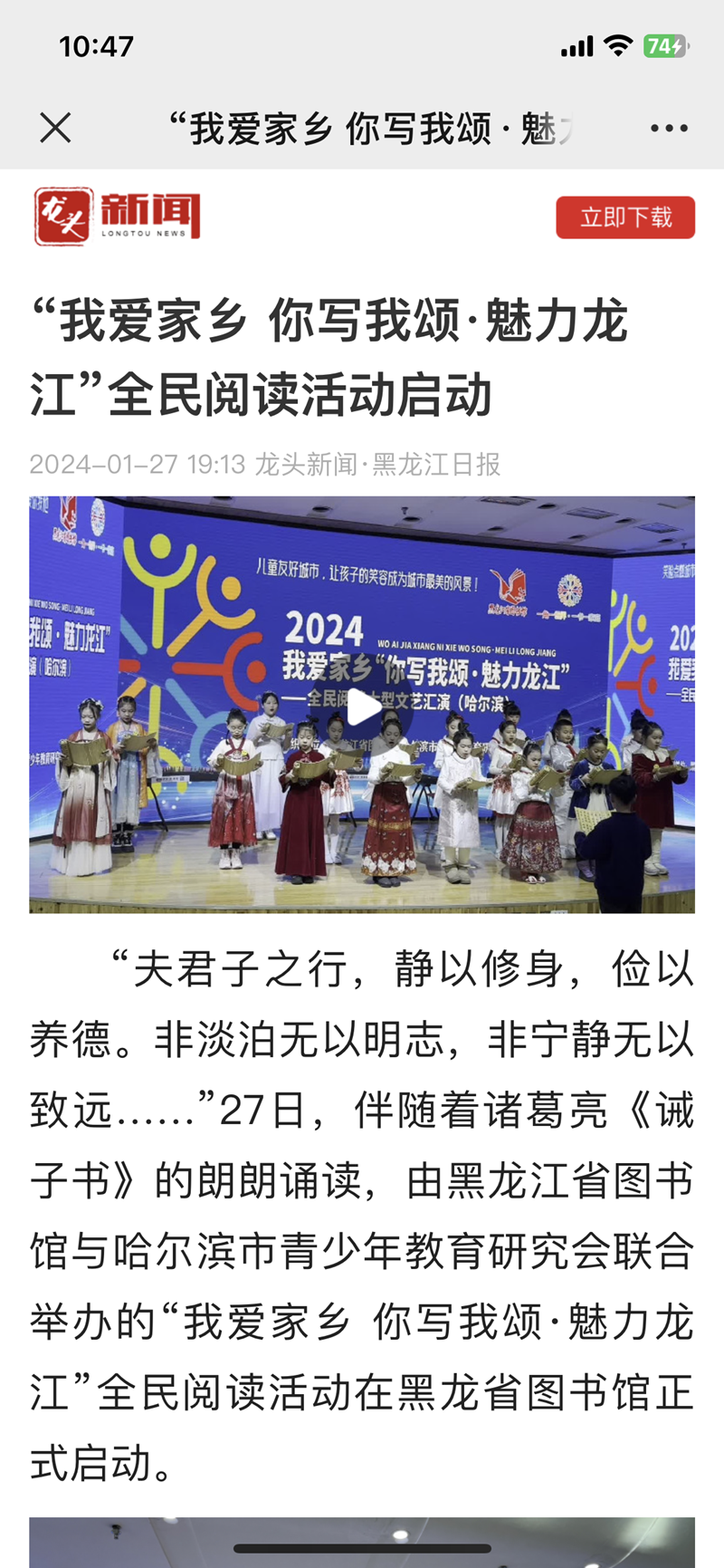 “我爱家乡 你写我颂·魅力龙江”全民阅读活动启动