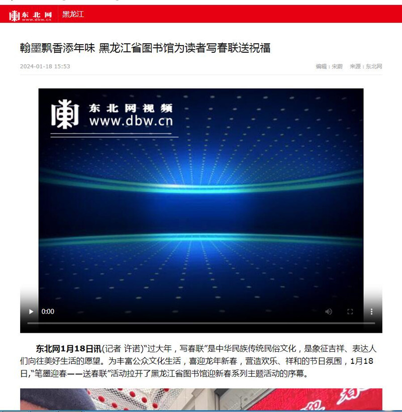 翰墨飘香添年味 黑龙江省图书馆为读者写春联送祝福