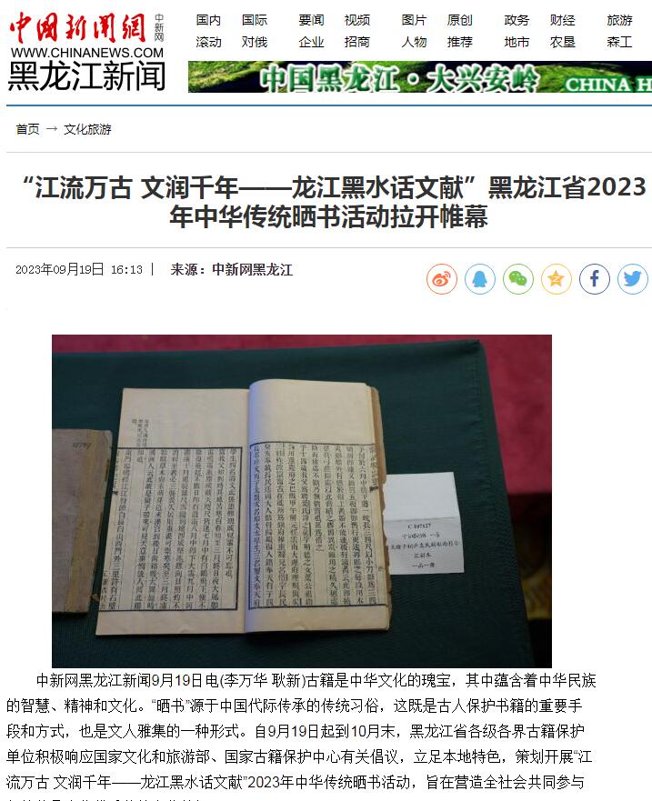 “江流万古 文润千年——龙江黑水话文献”黑龙江省2023年中华传统晒书活动拉开帷幕