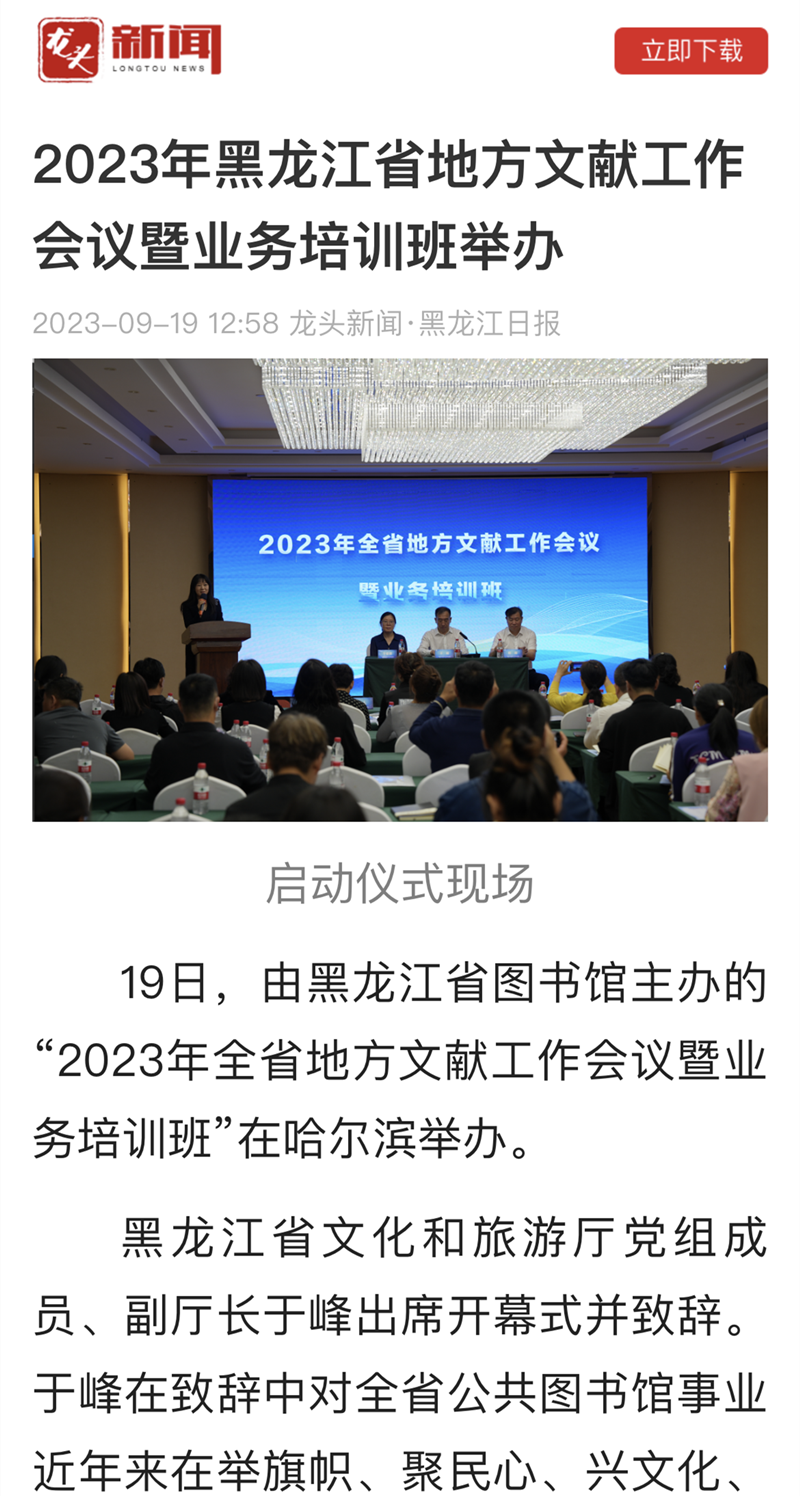 2023年黑龙江省地方文献工作会议暨业务培训班举办