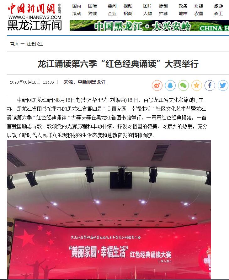 龙江诵读第六季“红色经典诵读”大赛举行