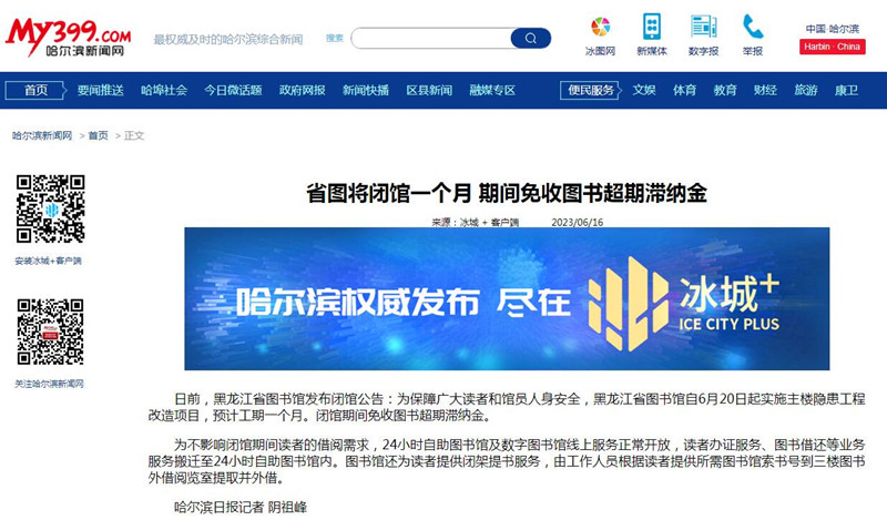 省图将闭馆一个月 期间免收图书超期滞纳金