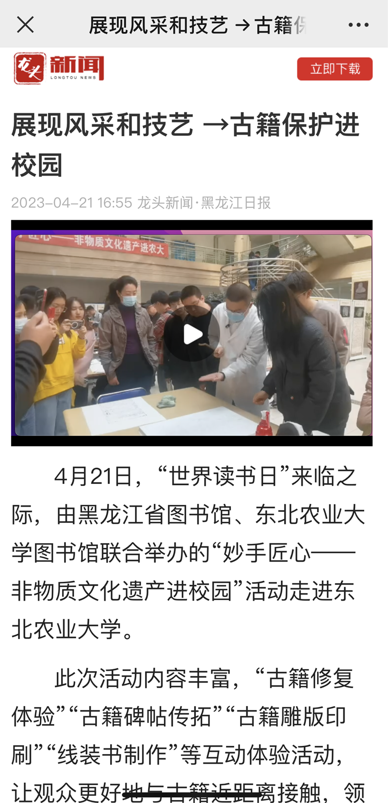 展现风采和技艺 →古籍保护进校园