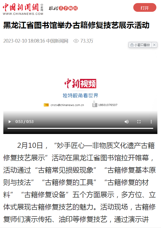 黑龙江省图书馆举办古籍修复技艺展示活动