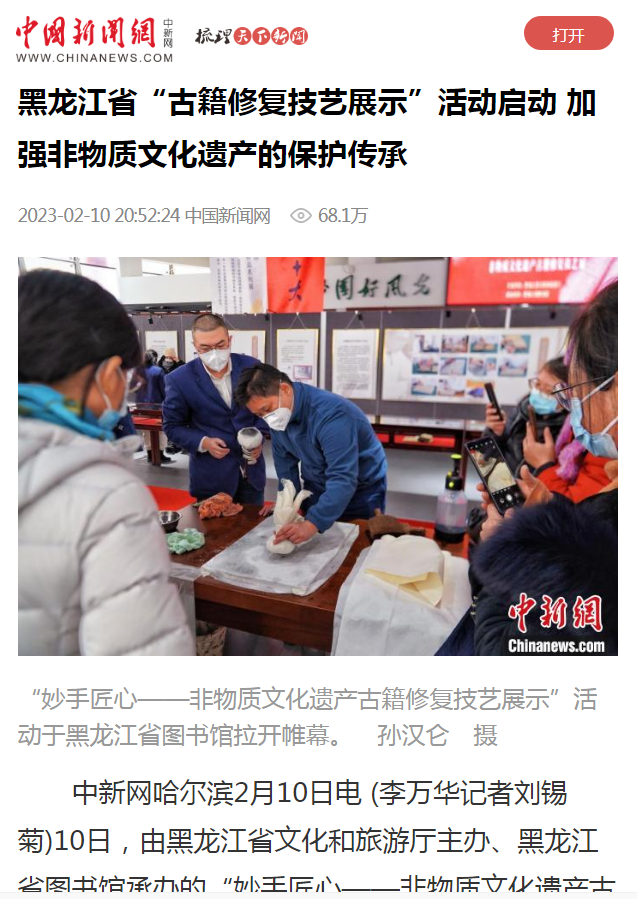 黑龙江省“古籍修复技艺展示”活动启动 加强非物质文化遗产的保护传承