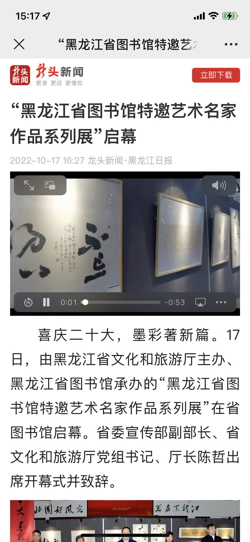 “黑龙江省图书馆特邀艺术名家作品系列展”启幕