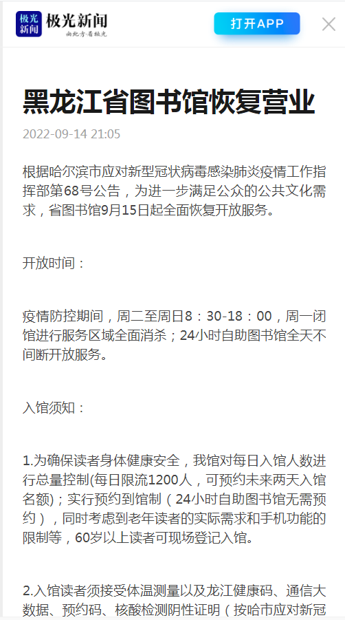 黑龙江省图书馆恢复营业