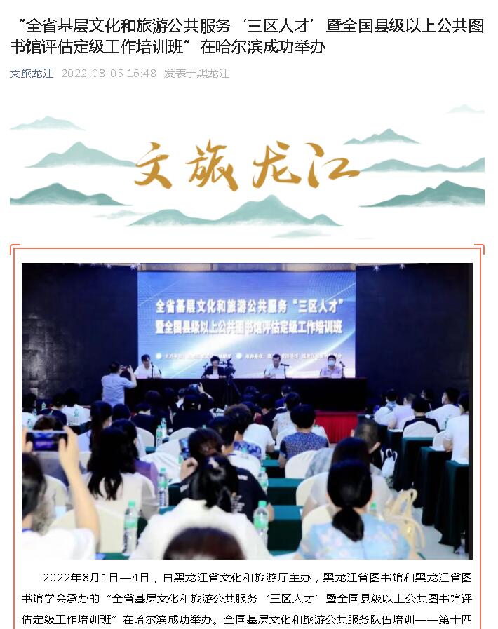 “全省基层文化和旅游公共服务‘三区人才’暨全国县级以上公共图书馆评估定级工作培训班”在哈尔滨成功举办