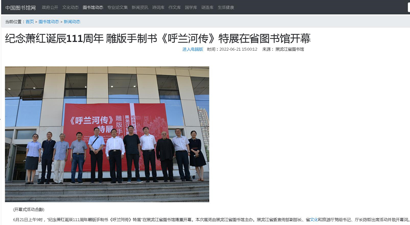 纪念萧红诞辰111周年 雕版手制书《呼兰河传》特展在省图书馆开幕