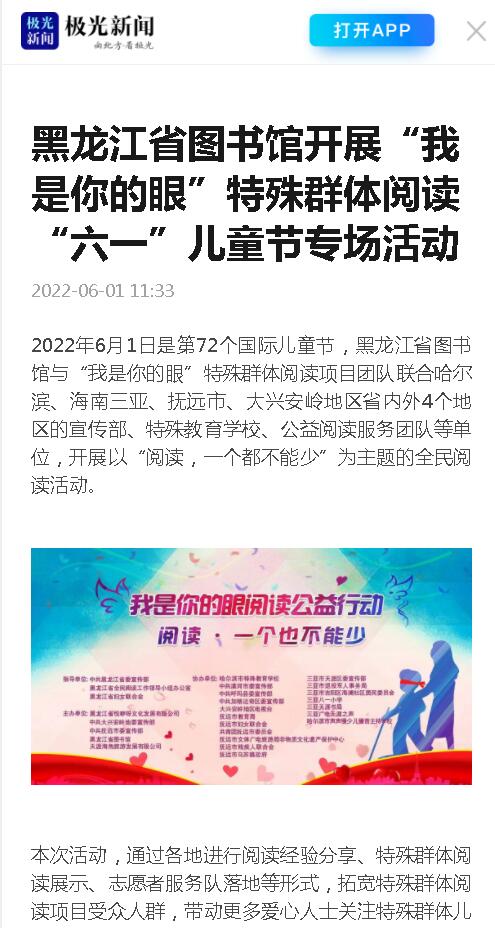 黑龙江省图书馆开展“我是你的眼”特殊群体阅读“六一”儿童节专场活动
