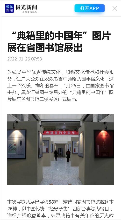 “典籍里的中国年”图片展在省图书馆展出