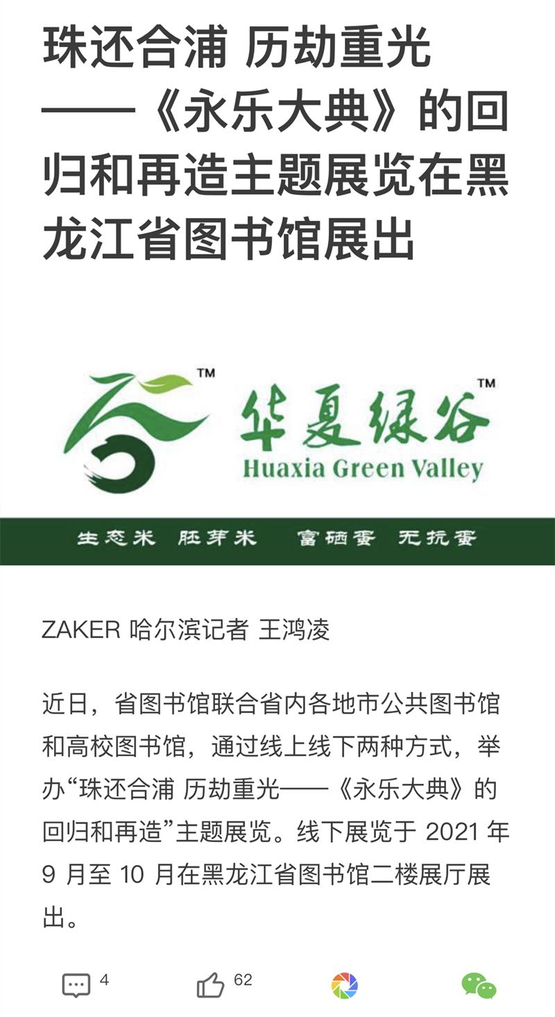 珠还合浦 历劫重光——《永乐大典》的回归和再造主题展览在黑龙江省图书馆展出