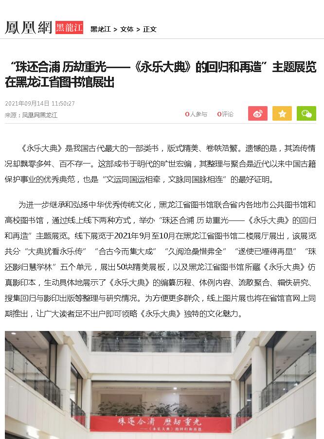 “珠还合浦 历劫重光——《永乐大典》的回归和再造”主题展览在黑龙江省图书馆展出