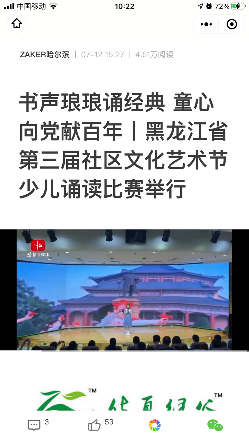 书声琅琅诵经典 童心向党献百年|黑龙江省第三届社区文化艺术节少儿诵读比赛举行