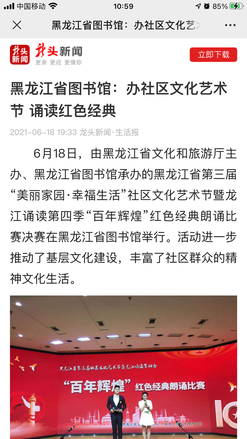 黑龙江省图书馆:办社区文化艺术节 诵读红色经典