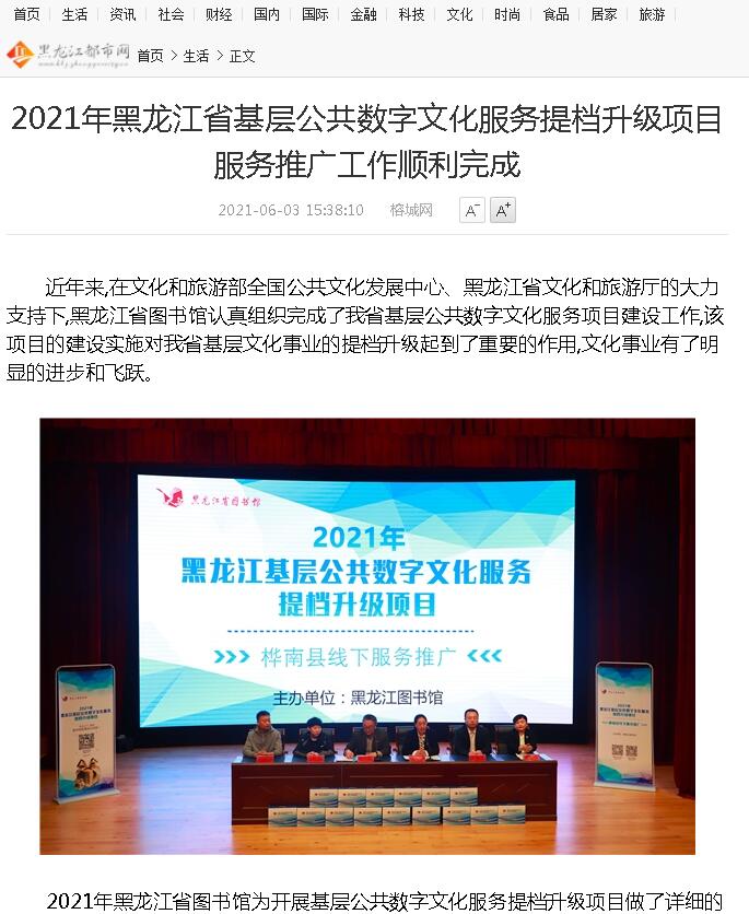 2021年黑龙江省基层公共数字文化服务提档升级项目服务推广工作圆满完成