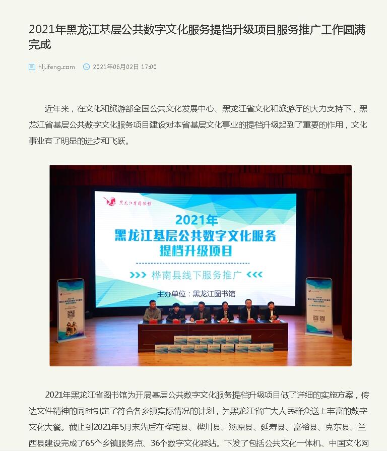 2021年黑龙江基层公共数字文化服务提档升级项目服务推广工作圆满完成