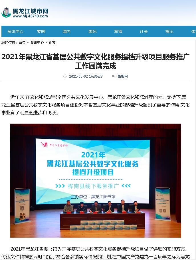 2021年黑龙江省基层公共数字文化服务提档升级项目服务推广工作圆满完成