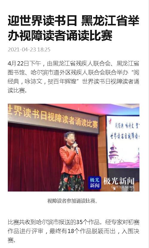 迎世界读书日 黑龙江省举办视障读者诵读比赛